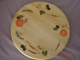 Tabuleiro giratório em madeira, ideal para usar num jantar de amigos, pois assim é só colocar a "paparoca" em cima do tabuleiro e rodar...Prático...